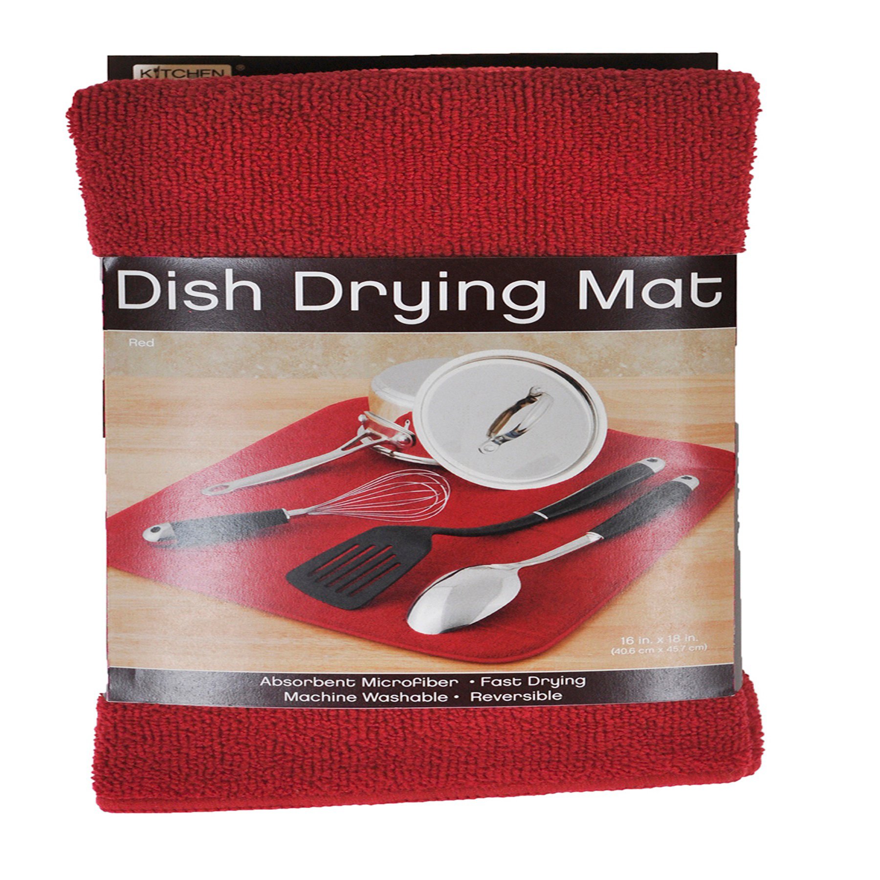 The kitchen basics dish drying mat is the new solution to the age old tradition of placing dish towels on the counter when hand washing pots pans dishes and glassware.